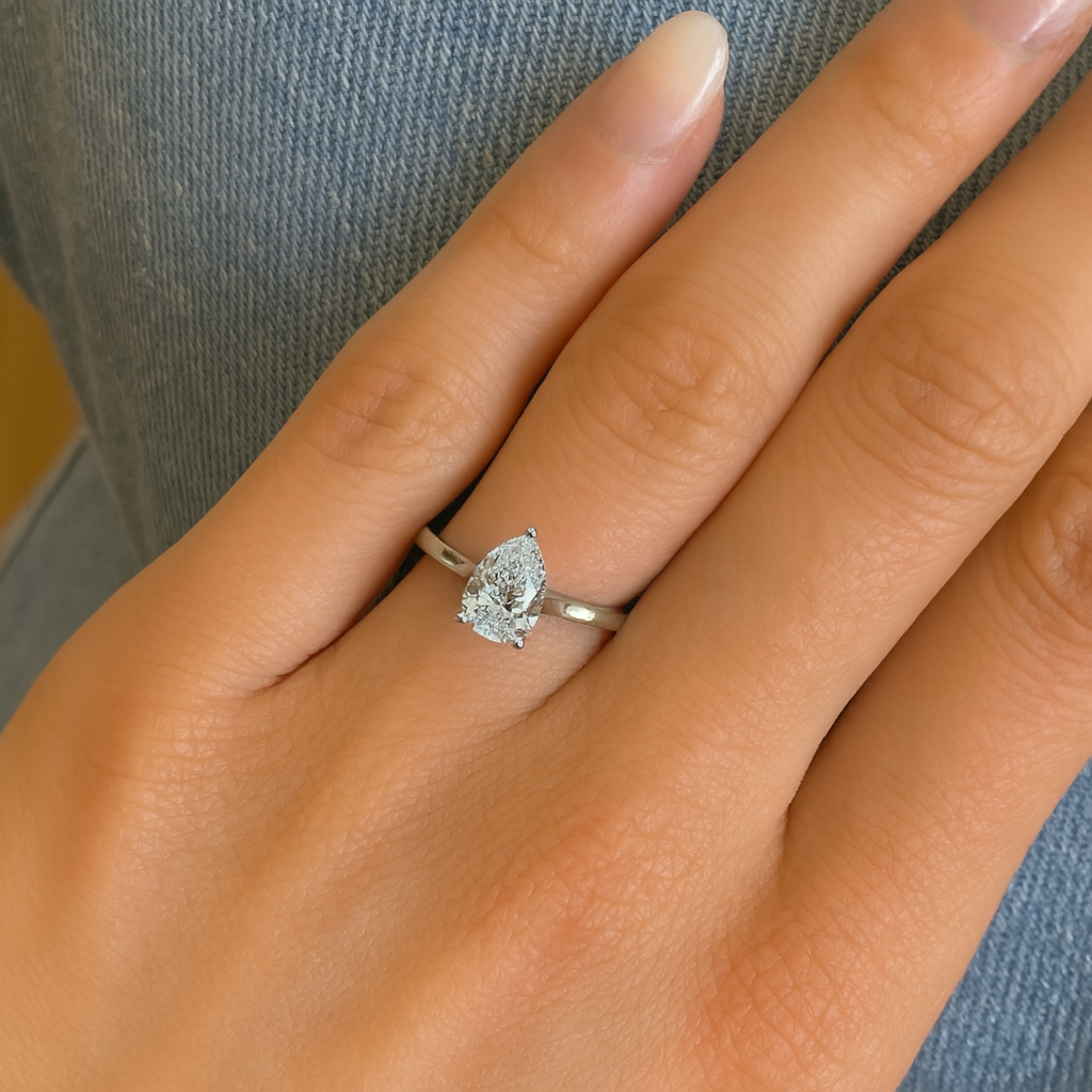 Pear-shaped lab-grown diamond solitaire engagement ring