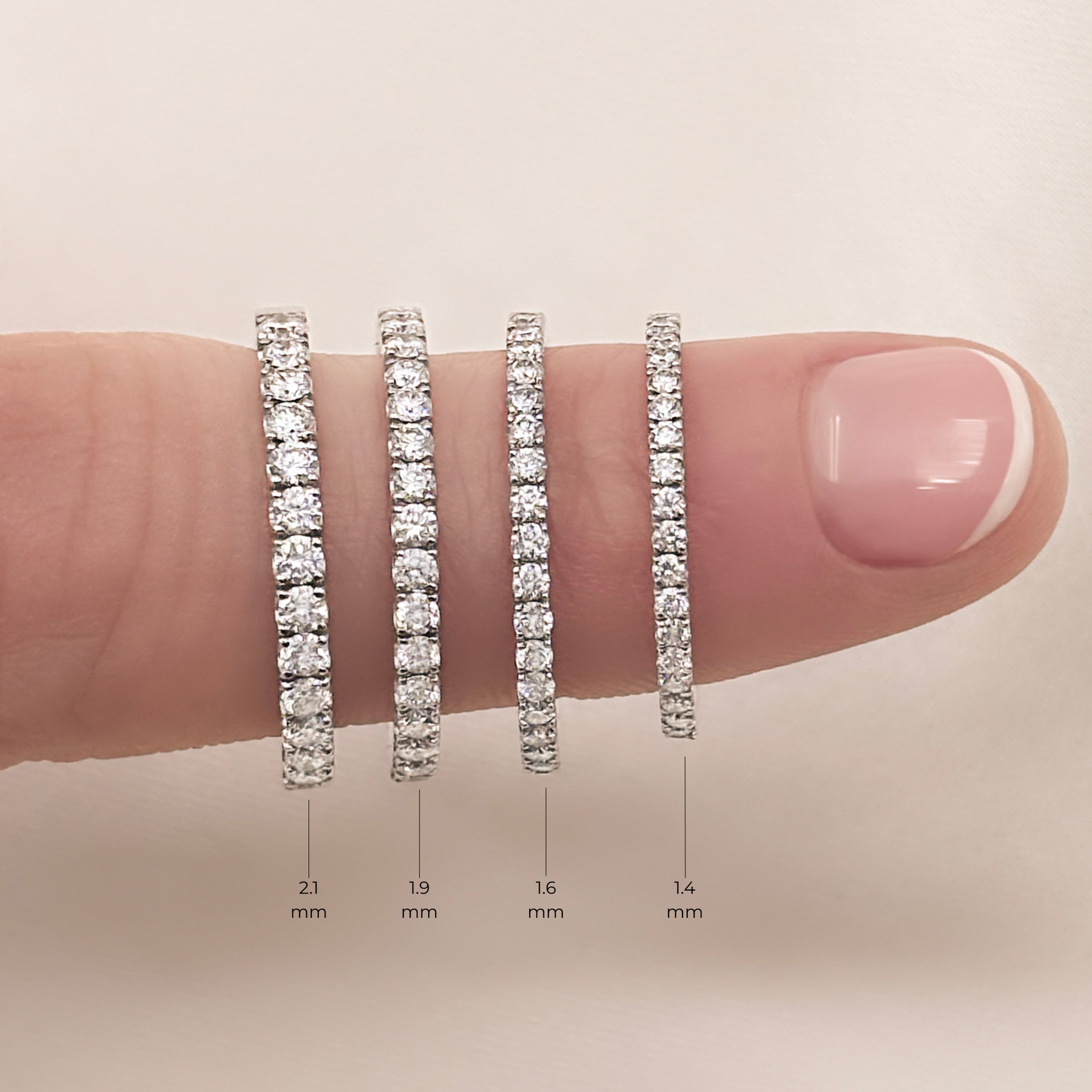 Cette élégante alliance avec demi pavé de diamants est la quintessence du chic et de l'élégance intemporelle. Les fines griffes autour de chaque diamant accentuent leur éclat pour un style romantique qui captive l'imagination.