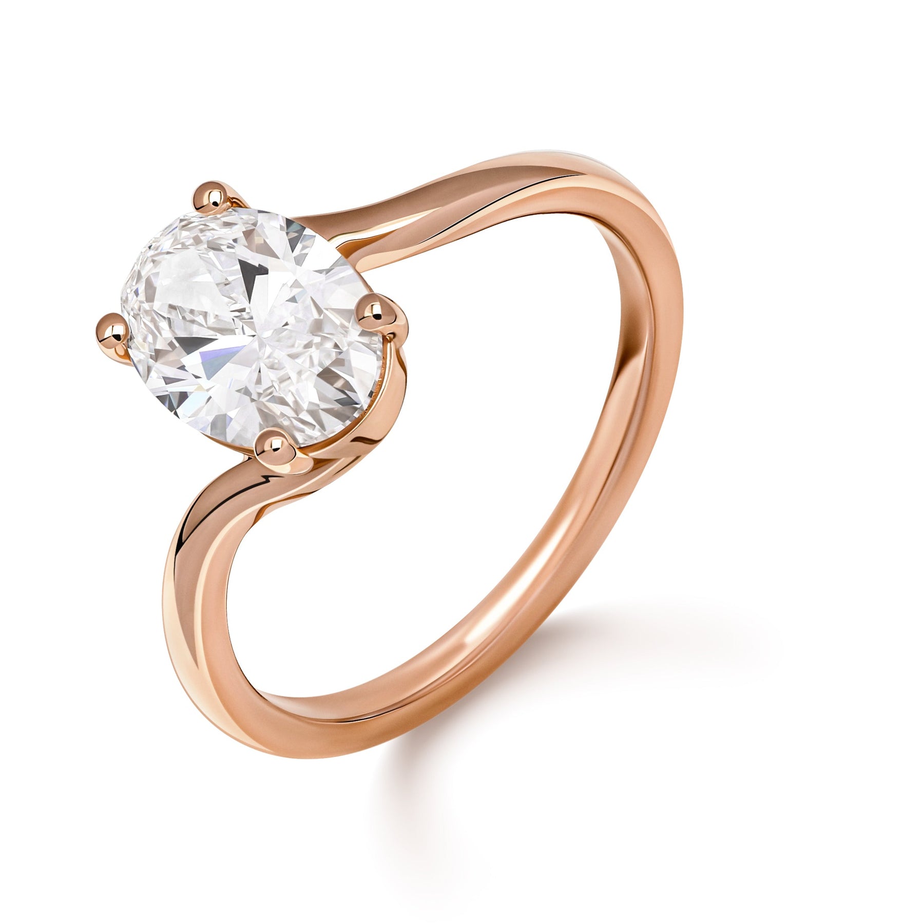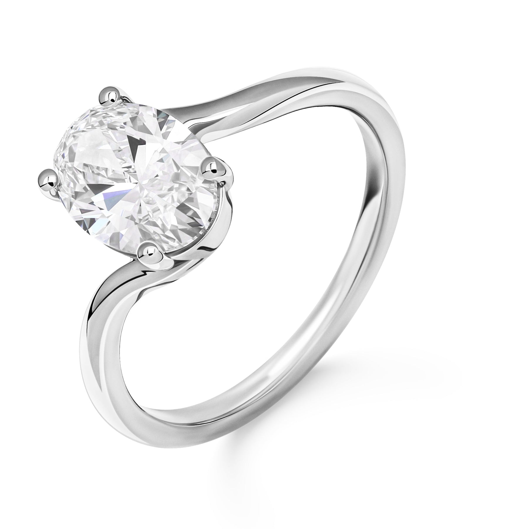 Solitaire verlovingsring met ovale diamant en gedraaide band